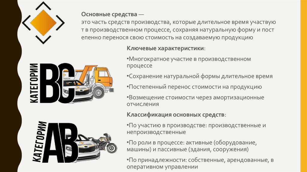 Основные средства —это часть средств производства, которые длительное время участвую