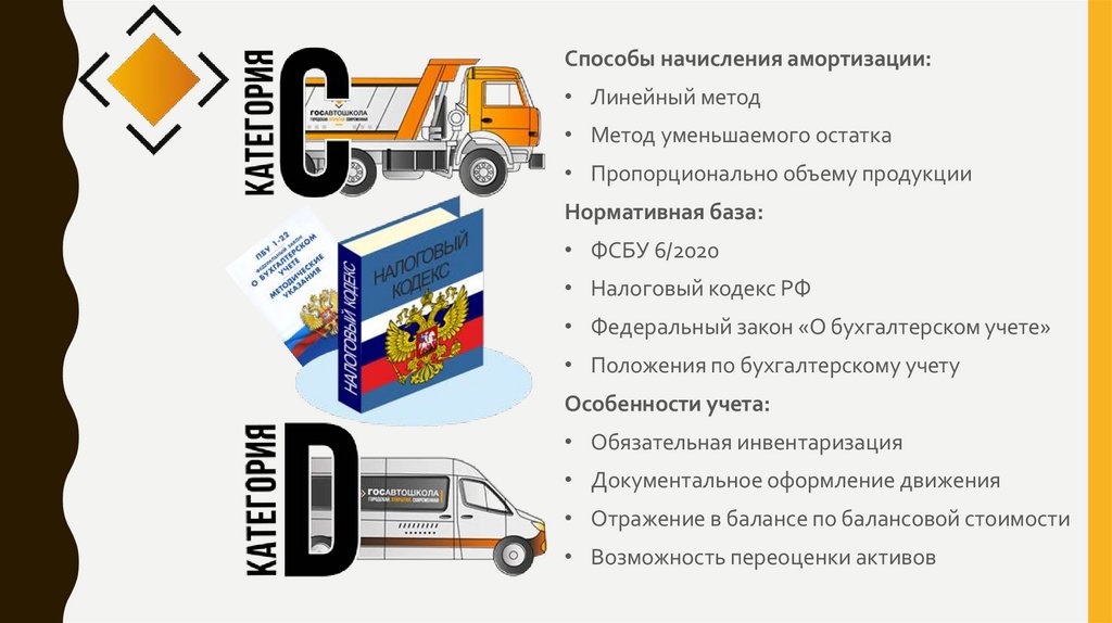Способы начисления амортизации:• Линейный метод