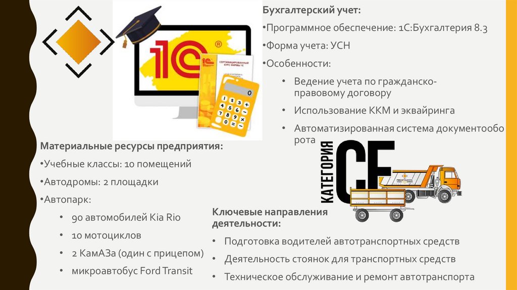 Бухгалтерский учет:•Программное обеспечение: 1С:Бухгалтерия 8.3