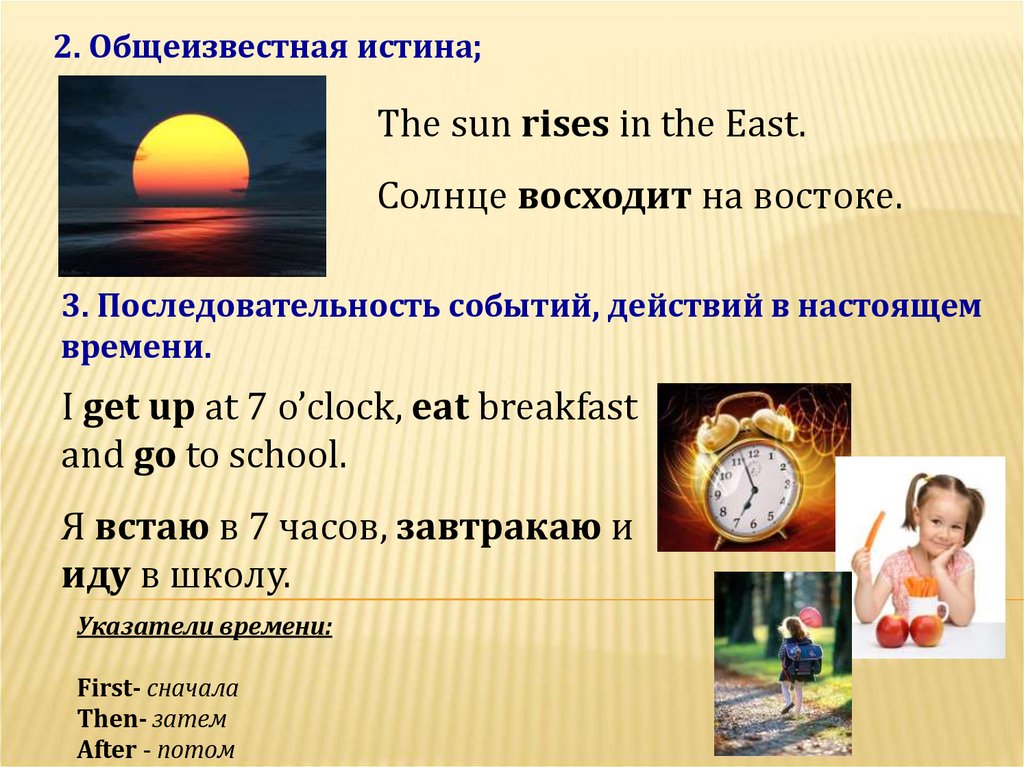 2. Общеизвестная истина;The sun rises in the East.
