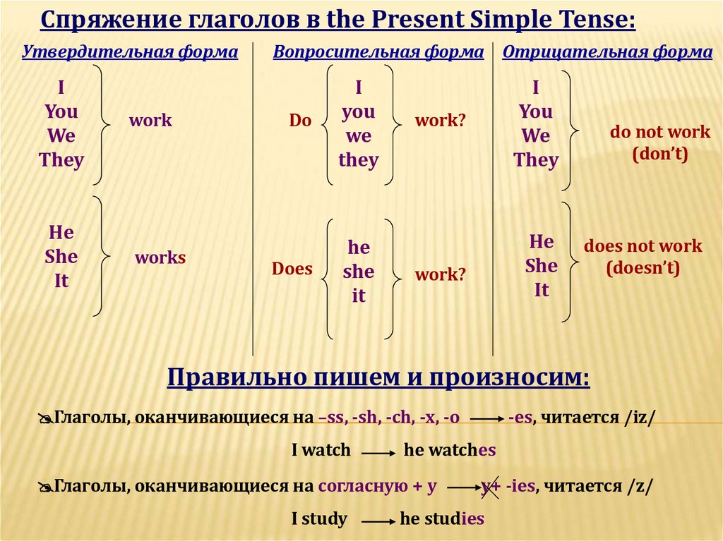 Спряжение глаголов в the Present Simple Tense:Утвердительная форма