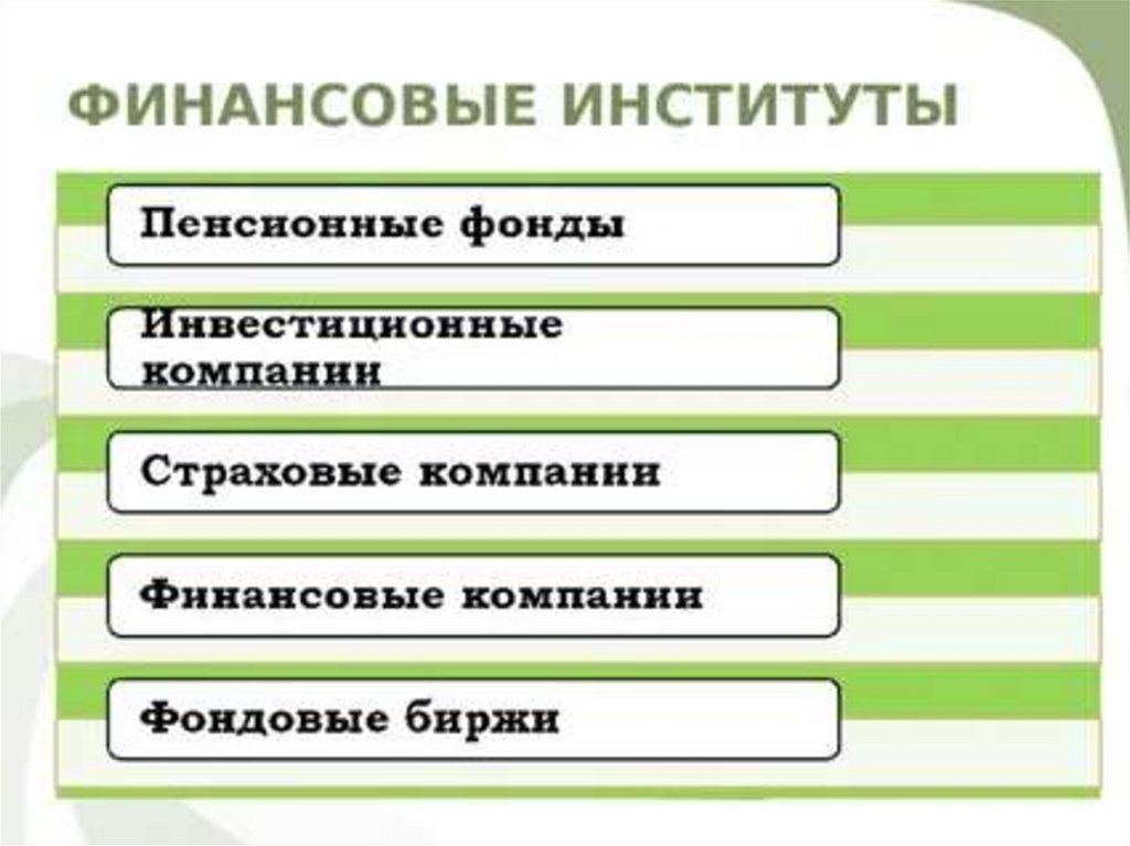 7. Финансовые институты — это организации, которые функционируют как посредники между участниками рынка, осуществляя движение