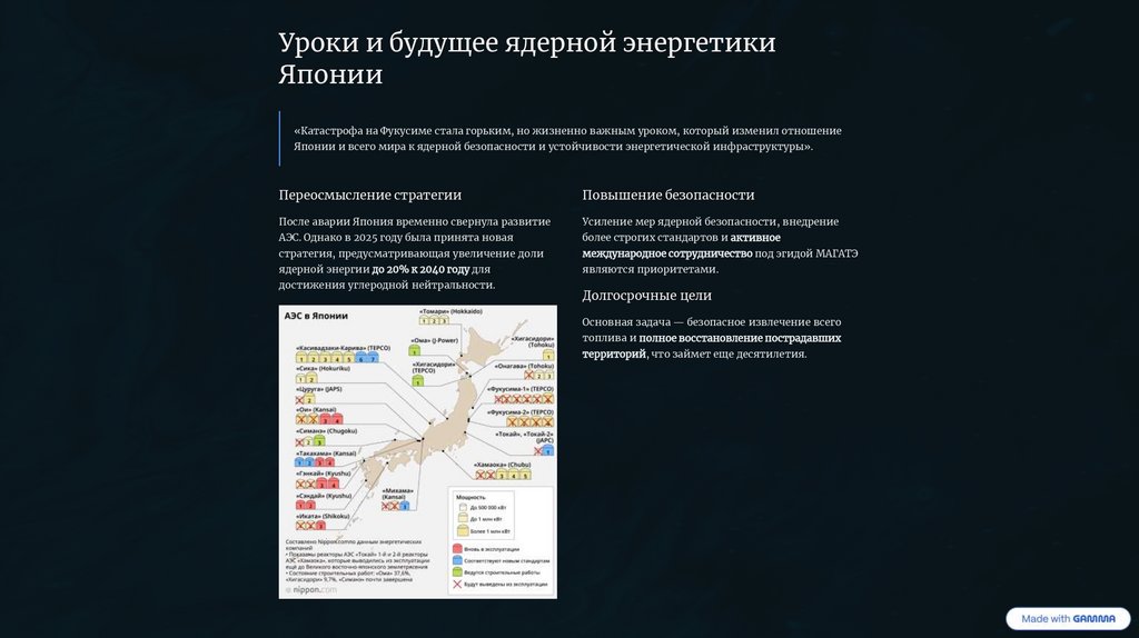 Японии и всего мира к ядерной безопасности и устойчивости энергетической инфраструктуры».