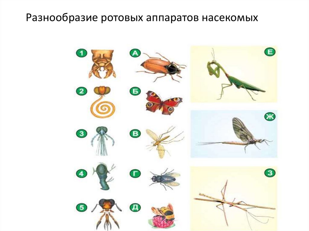 Разнообразие ротовых аппаратов насекомых9.