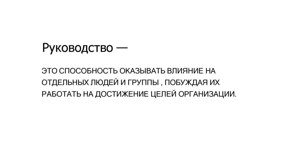 Руководство —ЭТО СПОСОБНОСТЬ ОКАЗЫВАТЬ ВЛИЯНИЕ НА