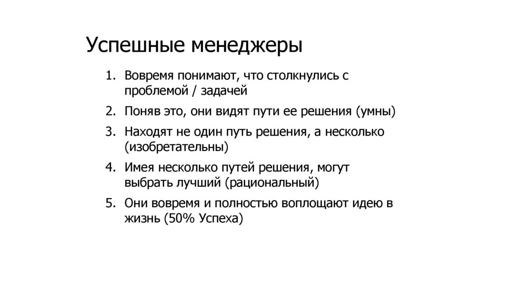 Успешные менеджеры1. Вовремя понимают, что столкнулись с