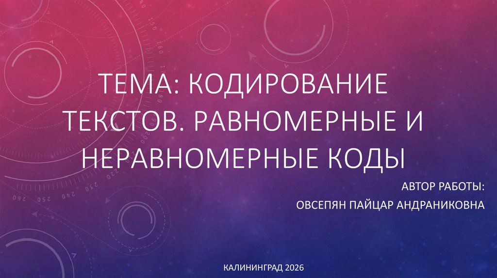 ТЕМА: КОДИРОВАНИЕТЕКСТОВ. РАВНОМЕРНЫЕ И