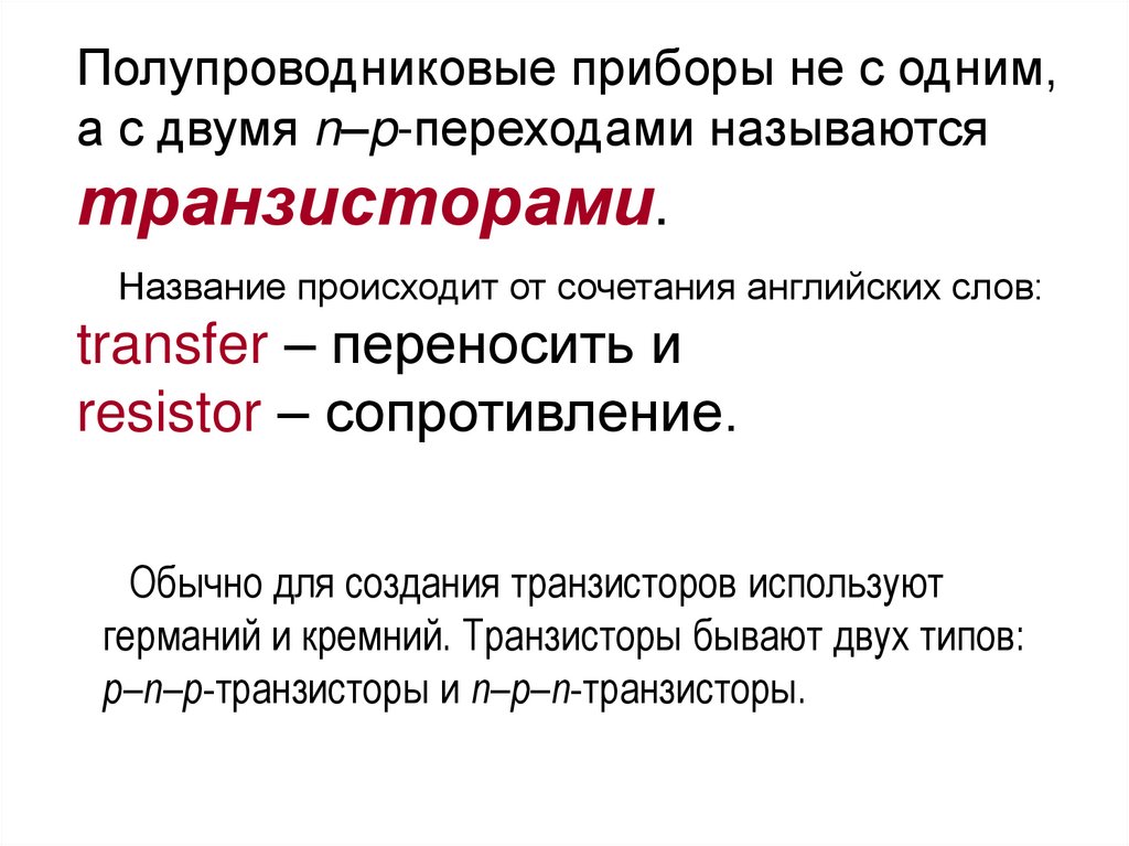 Полупроводниковые приборы не с одним,а с двумя n–p-переходами называются
