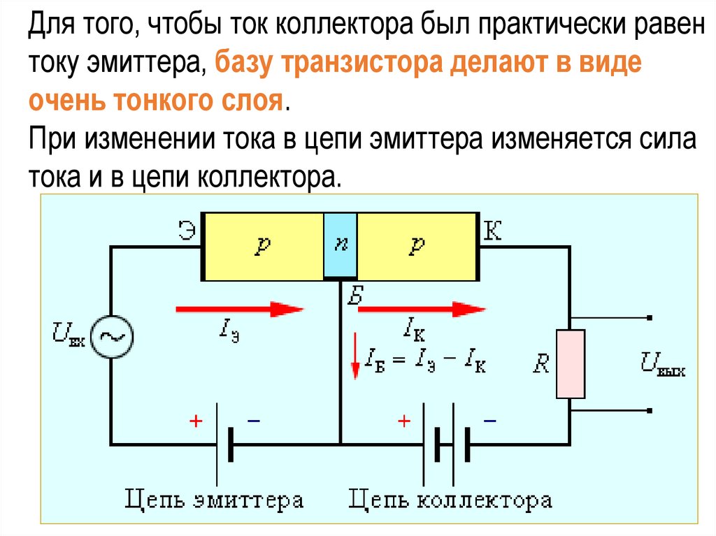 Для того, чтобы ток коллектора был практически равентоку эмиттера, базу транзистора делают в виде