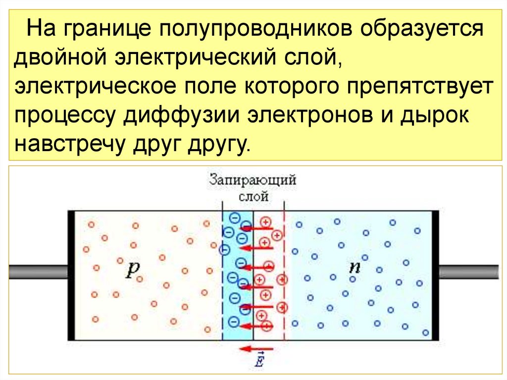 электронов и возникает положительно заряженный слой. В pпроцессу диффузии электронов и дырок