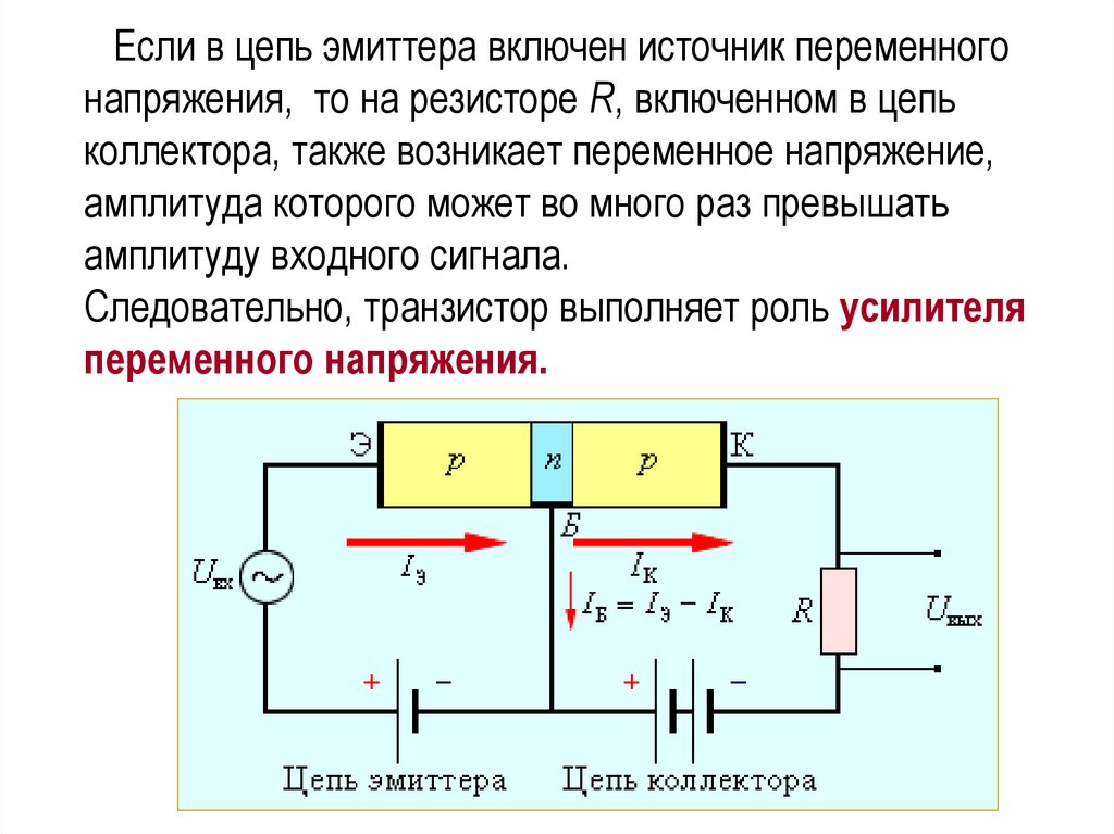 Следовательно, транзистор выполняет роль усилителя