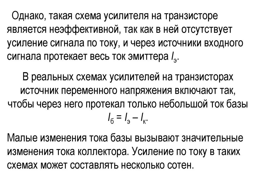 Однако, такая схема усилителя на транзистореявляется неэффективной, так как в ней отсутствует