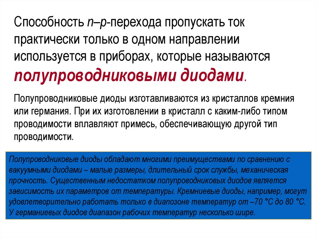 Полупроводниковые диоды обладают многими преимуществами по сравнению с