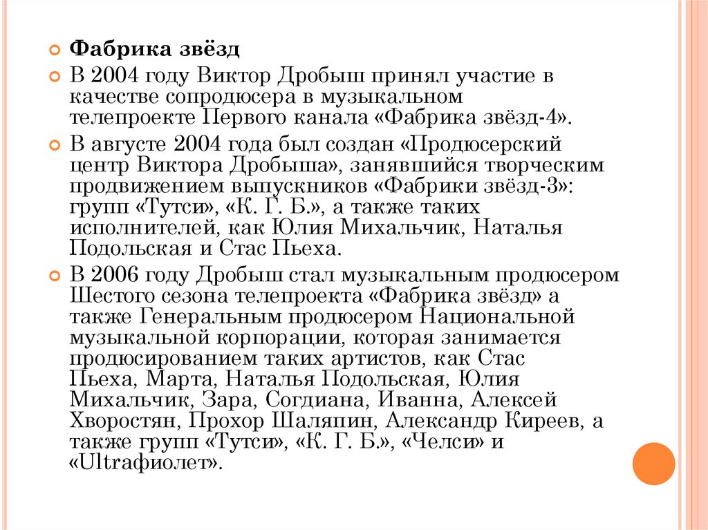 Фабрика звёздВ 2004 году Виктор Дробыш принял участие в