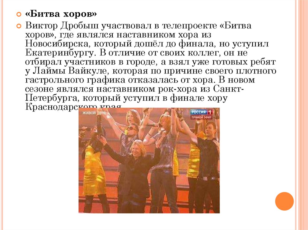 «Битва хоров»Виктор Дробыш участвовал в телепроекте «Битва