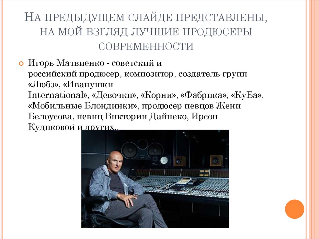 НА ПРЕДЫДУЩЕМ СЛАЙДЕ ПРЕДСТАВЛЕНЫ,НА МОЙ ВЗГЛЯД ЛУЧШИЕ ПРОДЮСЕРЫ