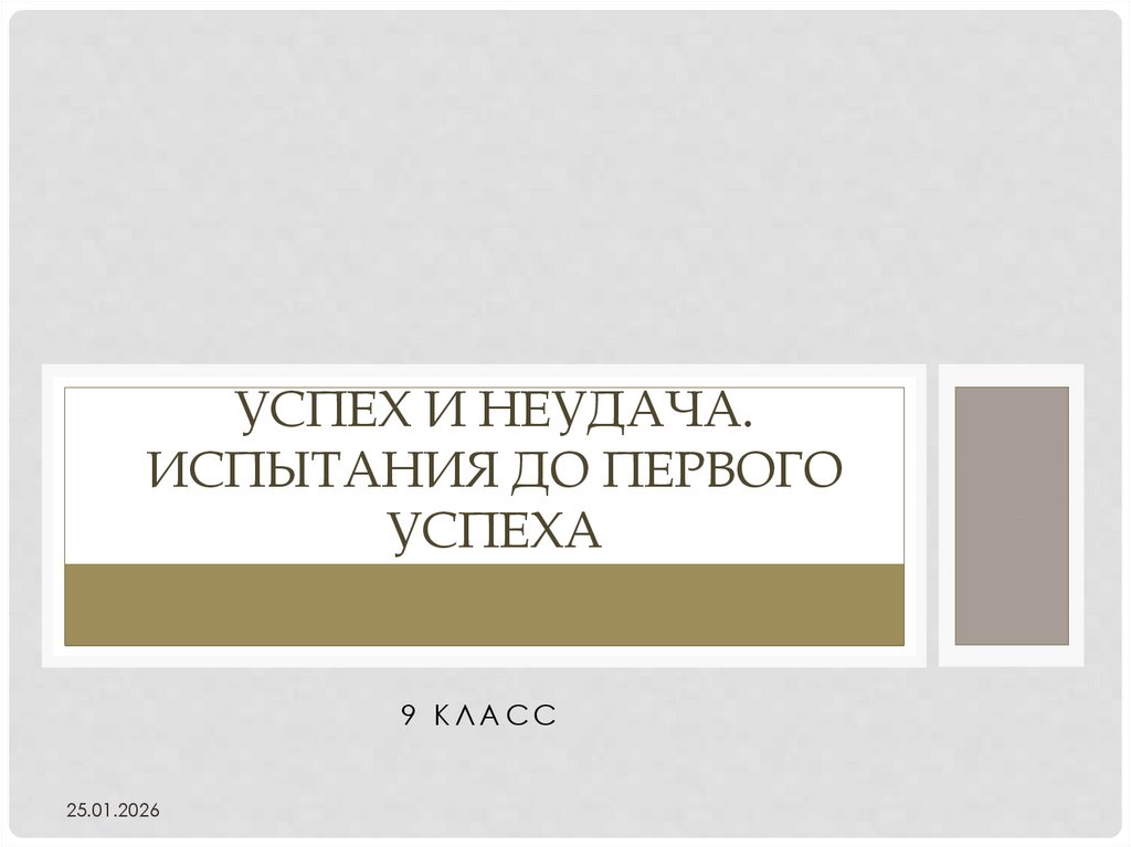 УСПЕХ И НЕУДАЧА.ИСПЫТАНИЯ ДО ПЕРВОГО