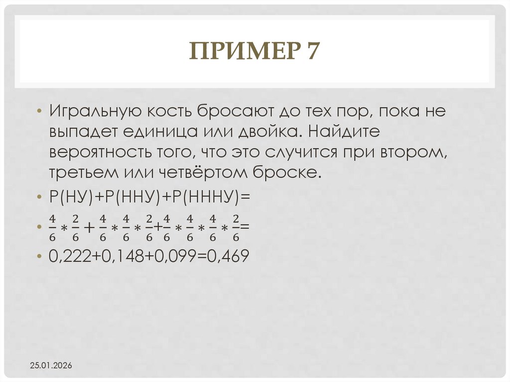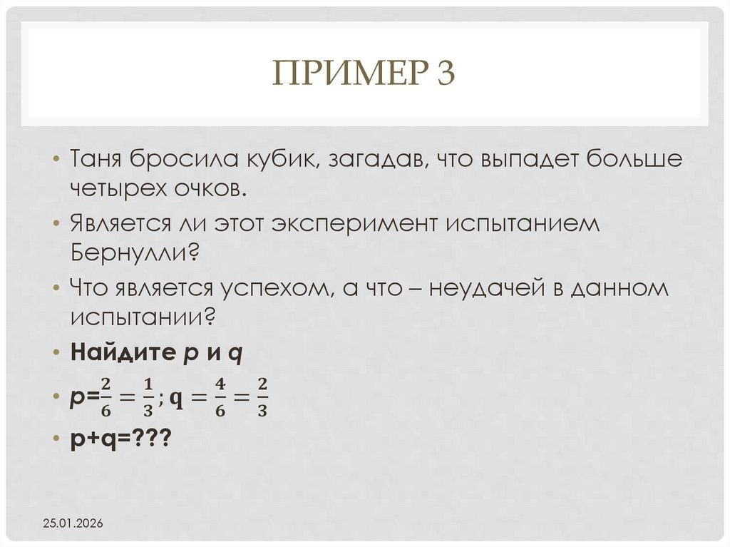 ПРИМЕР 3• Таня бросила кубик, загадав, что выпадет больше