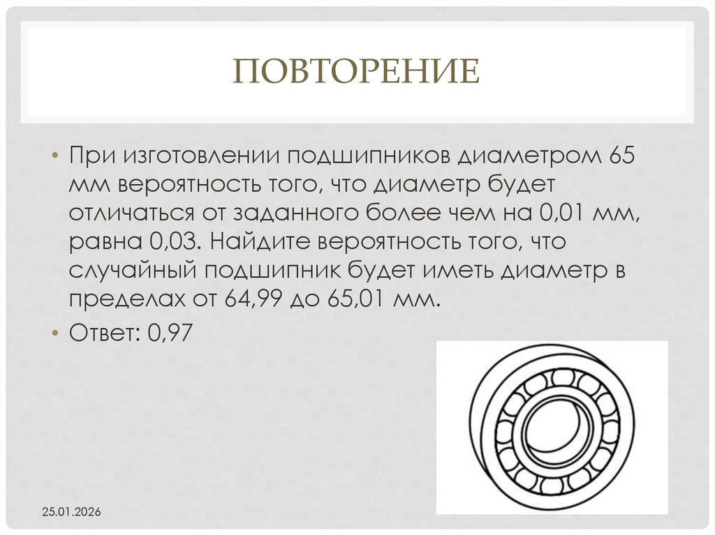 ПОВТОРЕНИЕ• При изготовлении подшипников диаметром 65