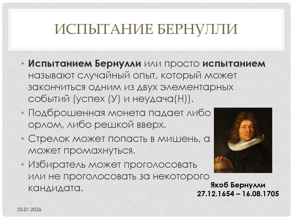 ИСПЫТАНИЕ БЕРНУЛЛИ• Испытанием Бернулли или просто испытанием