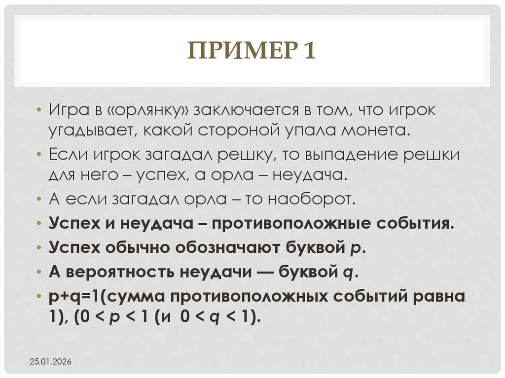 ПРИМЕР 1• Игра в «орлянку» заключается в том, что игрок