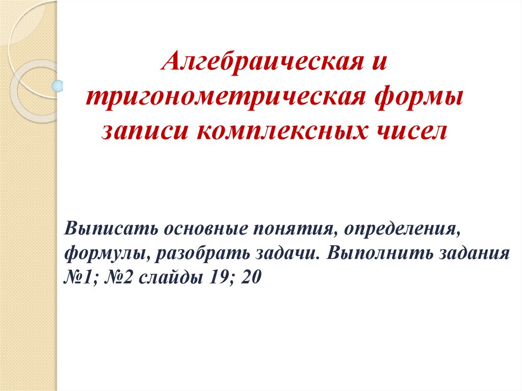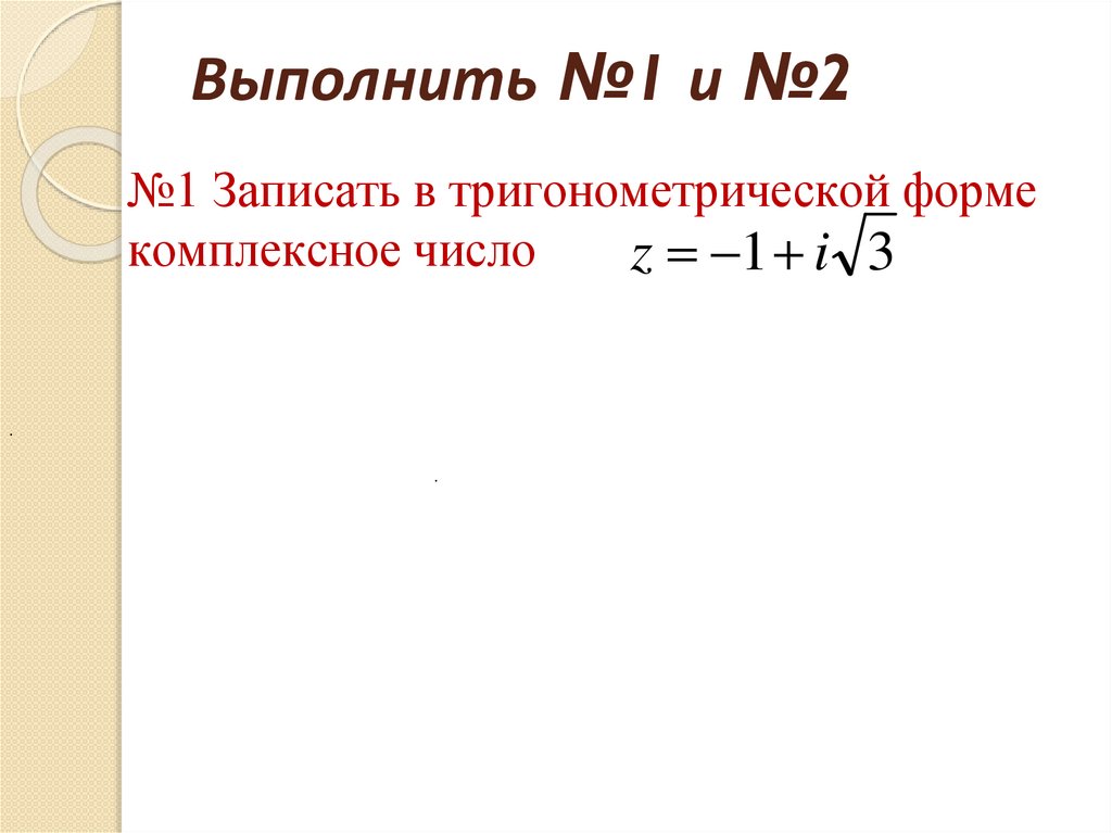Выполнить №1 и №2№1 Записать в тригонометрической форме