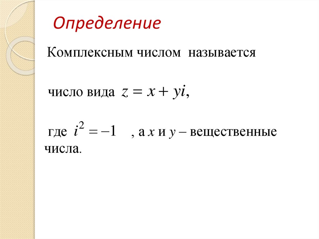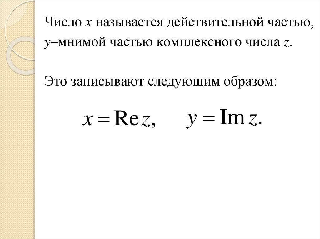 Число x называется действительной частью,y–мнимой частью комплексного числа z.