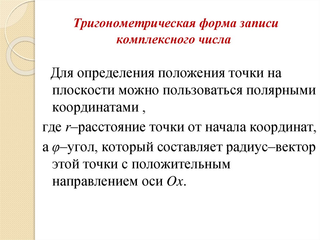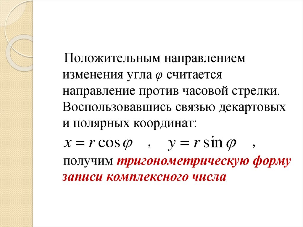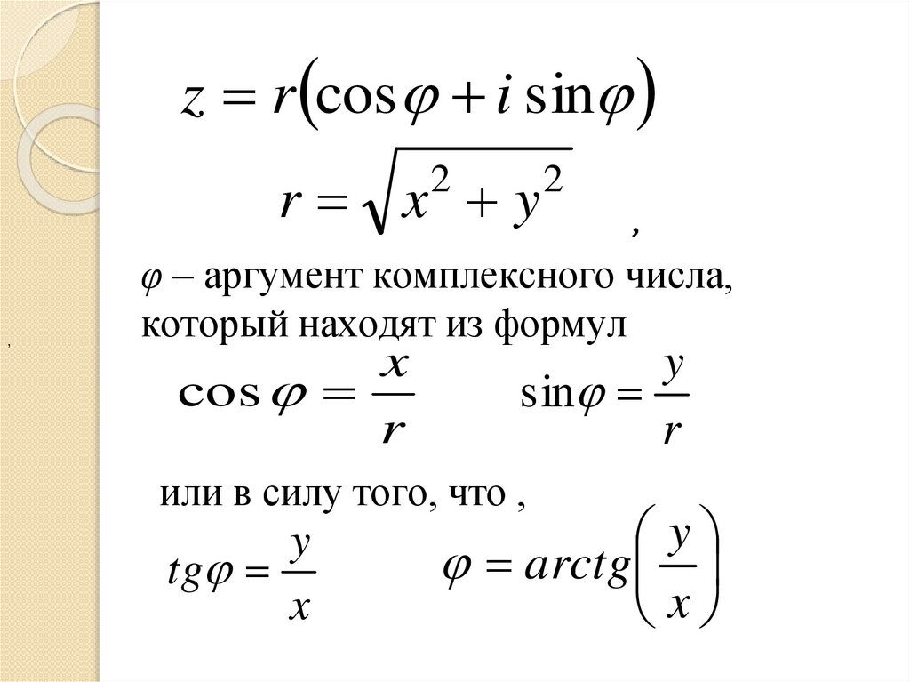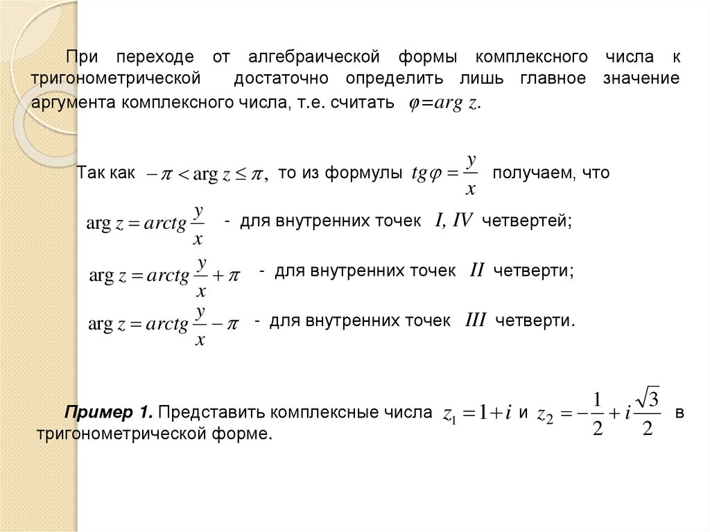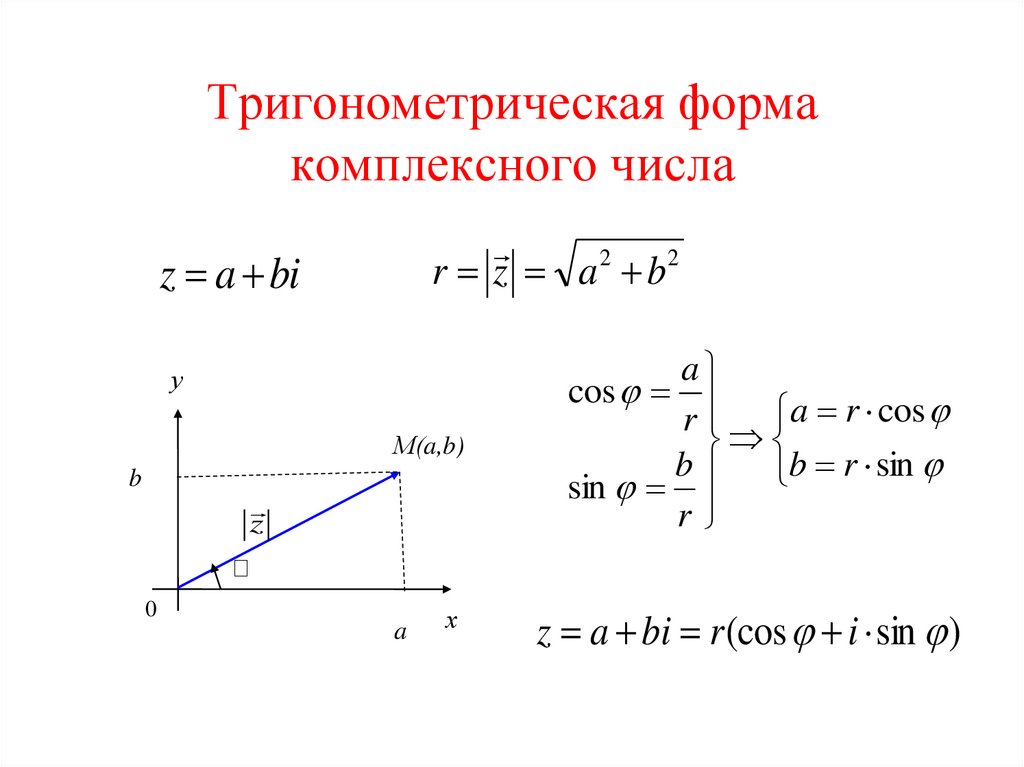 При переходе от алгебраической формы комплексного числа ктригонометрической