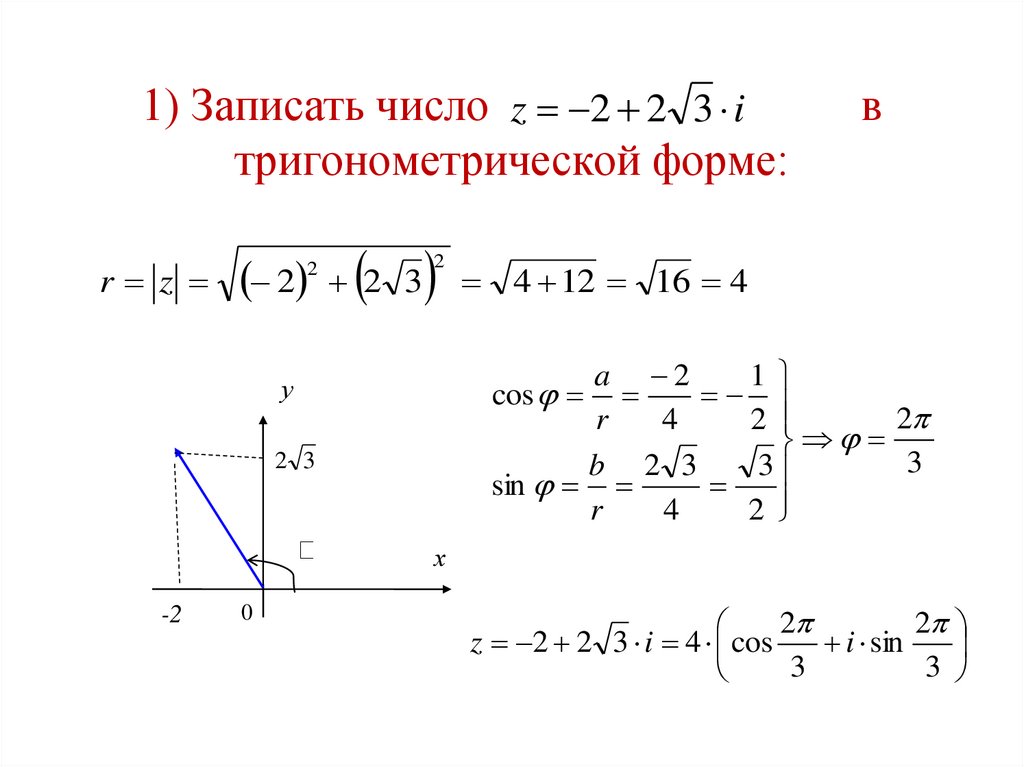 1) Записать число z 2 2 3 iтригонометрической форме: