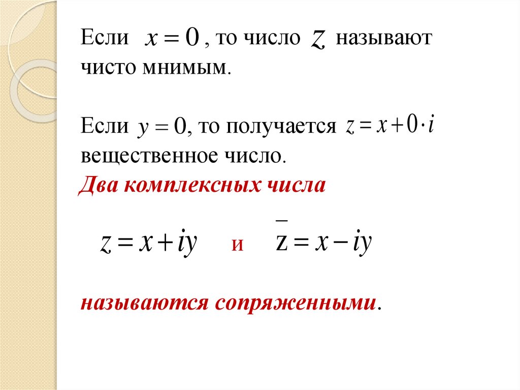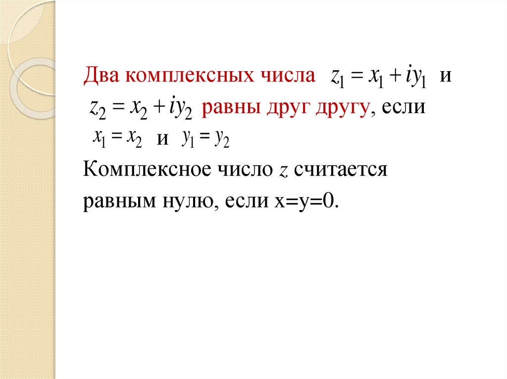 Два комплексных числа z1 x1 iy1 иz2 x2 iy2 равны друг другу, если