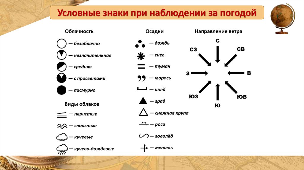 Условные знаки при наблюдении за погодой© Полшкова В.В., 2018