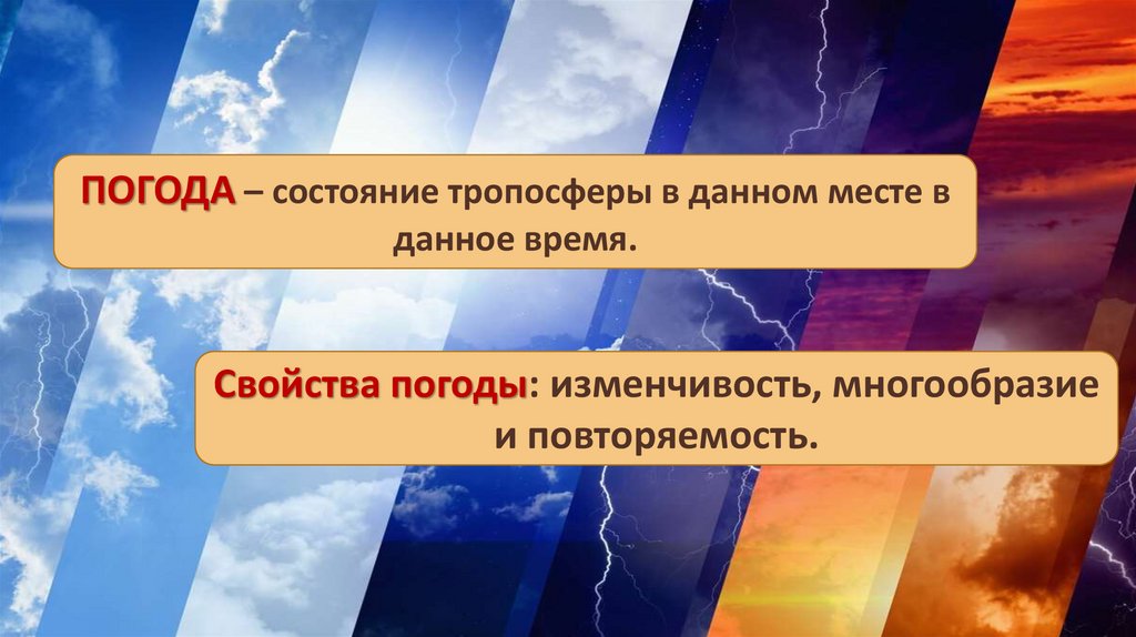 ПОГОДА – состояние тропосферы в данном месте вданное время.