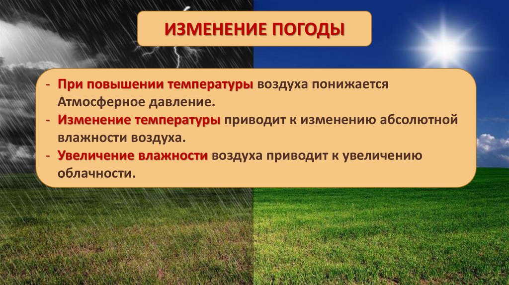 ИЗМЕНЕНИЕ ПОГОДЫ- При повышении температуры воздуха понижается