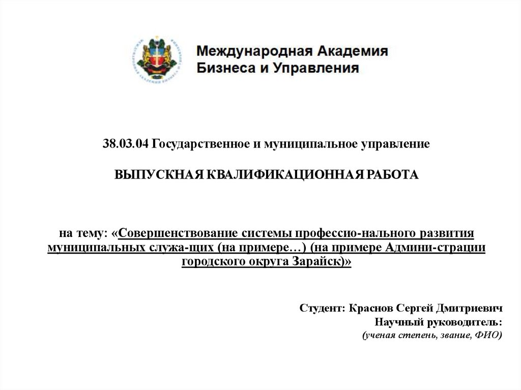 38.03.04 Государственное и муниципальное управлениеВЫПУСКНАЯ КВАЛИФИКАЦИОННАЯ РАБОТА