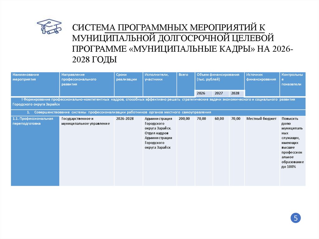 ПРОГРАММЕ «МУНИЦИПАЛЬНЫЕ КАДРЫ» НА 20262028 ГОДЫ