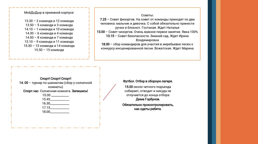 МойДоДыр в приемной корпусе:13.30 – 2 команда и 12 команда
