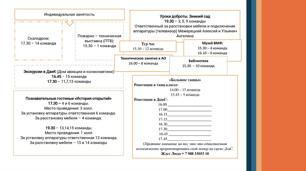 •9.00 – планерка 3 холла и палубы. Место проведения: 3 холл.