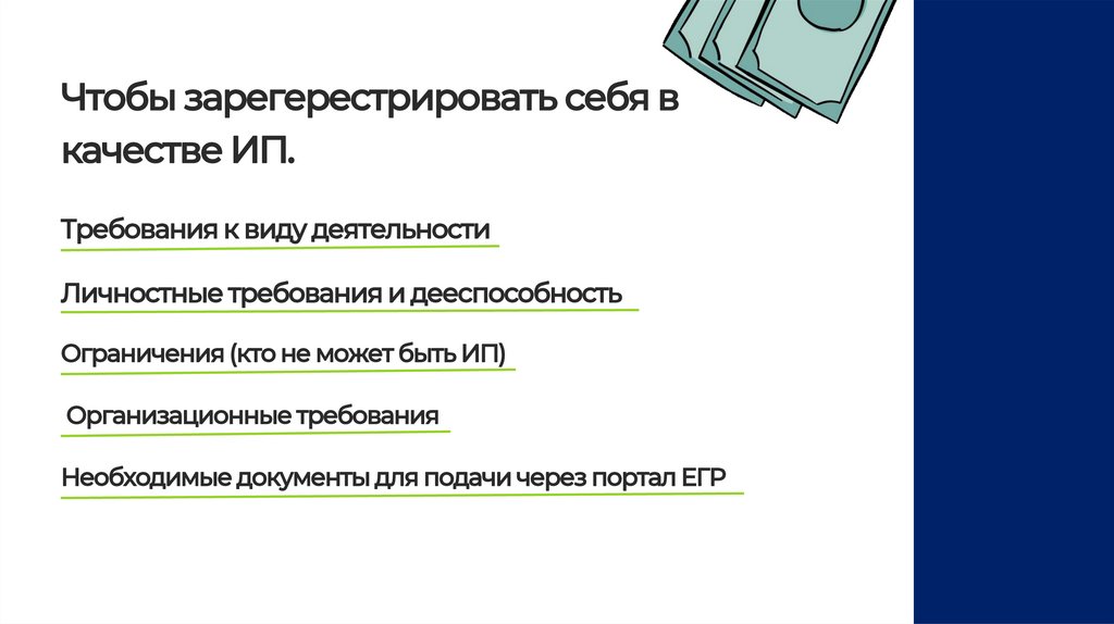 Чтобы зарегерестрировать себя вкачестве ИП.