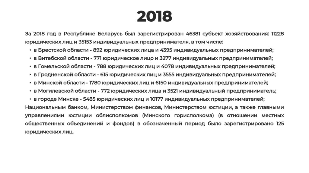 2018За 2018 год в Республике Беларусь был зарегистрирован 46381 субъект хозяйствования: 11228
