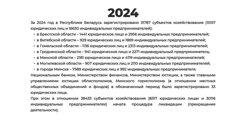 2024За 2024 год в Республике Беларусь зарегистрировано 31787 субъектов хозяйствования (15157