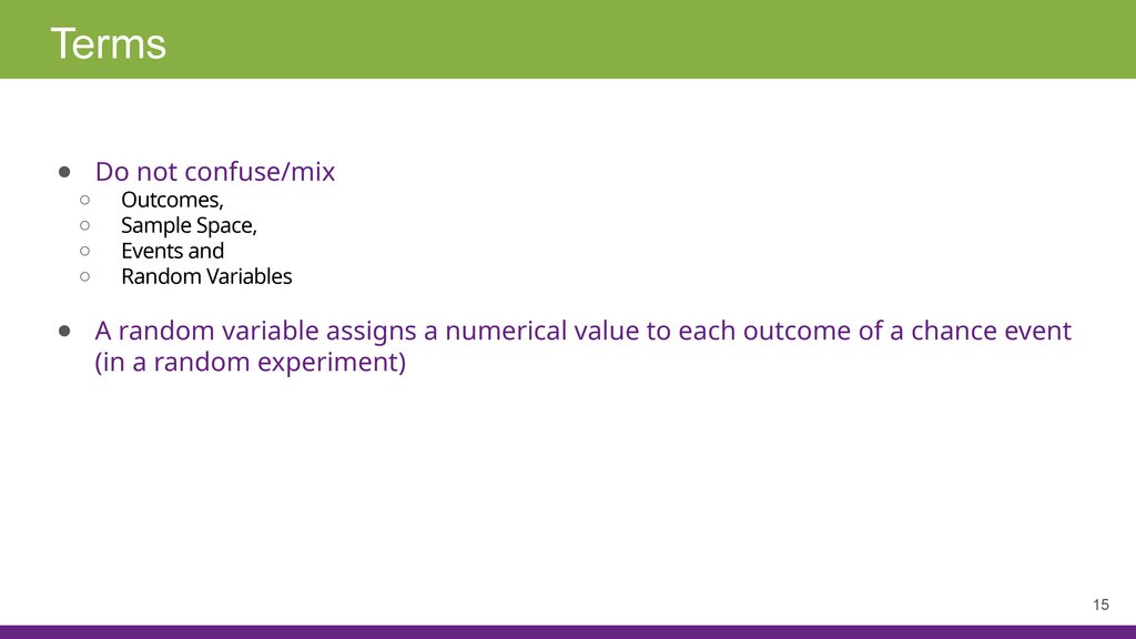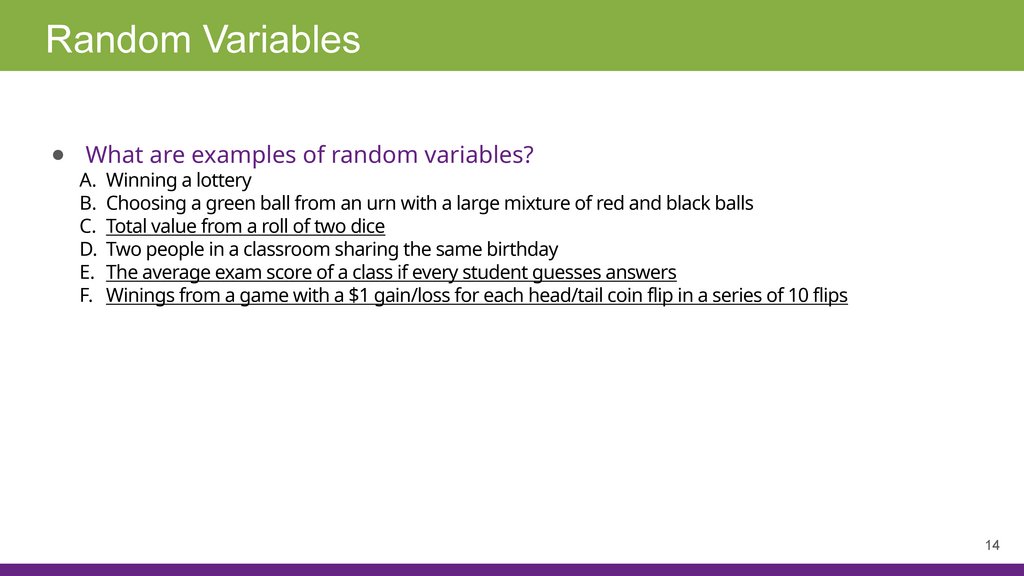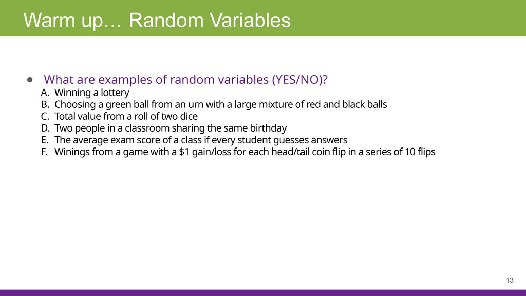 Warm up… Random Variables● What are examples of random variables (YES/NO)?
