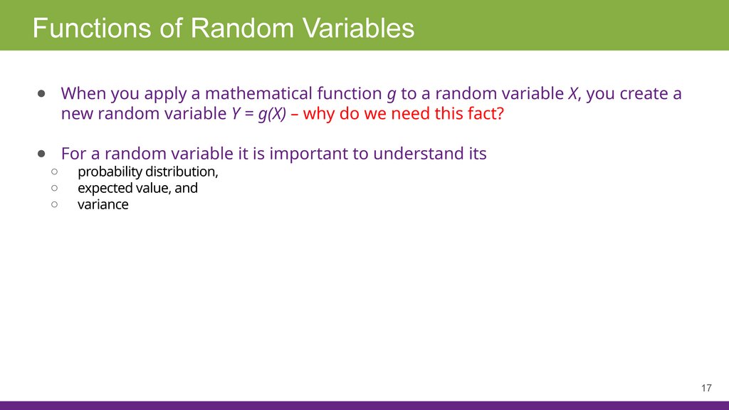 Functions of Random Variables● When you apply a mathematical function g to a random variable X, you create a