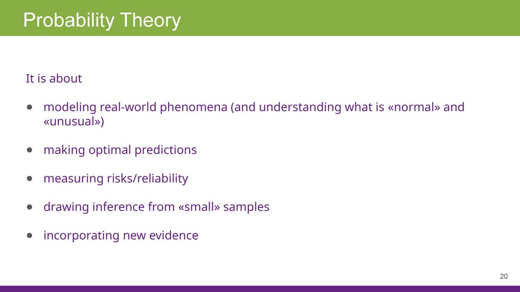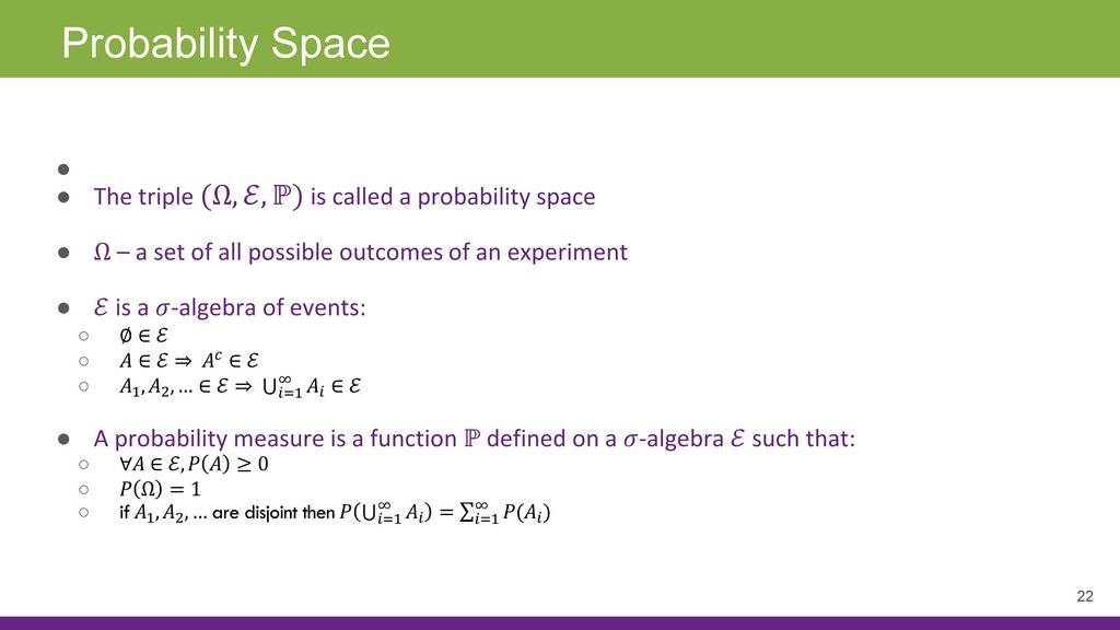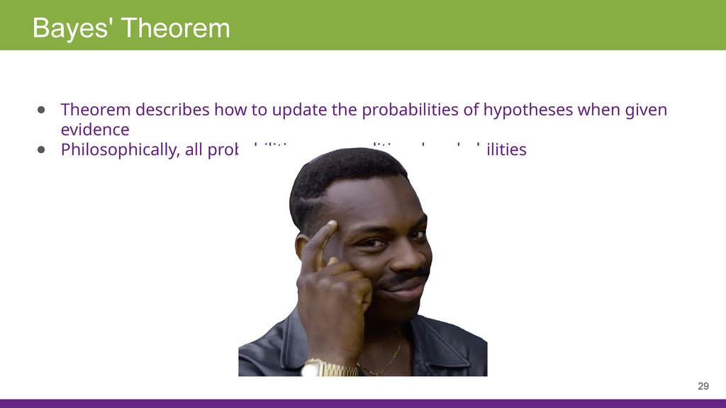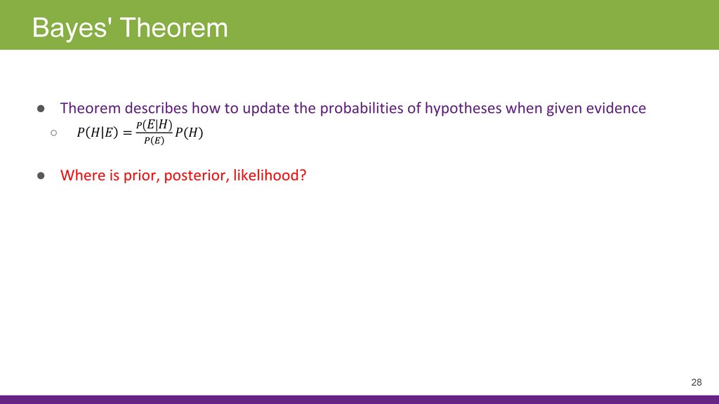 Bayes' Theorem● Theorem describes how to update the probabilities of hypotheses when given