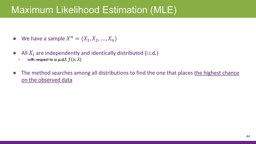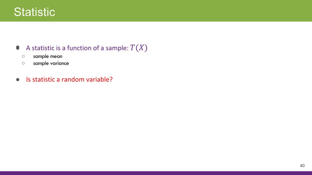 Estimation● Inferential statistics is focused on the estimation of the population parameter