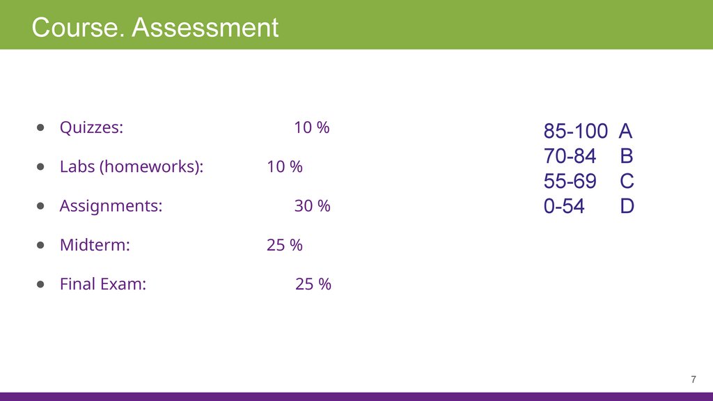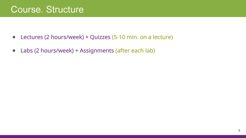 Course. Structure● Lectures (2 hours/week) + Quizzes (5-10 min. on a lecture)