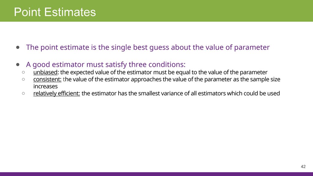 Point Estimates● The point estimate is the single best guess about the value of parameter