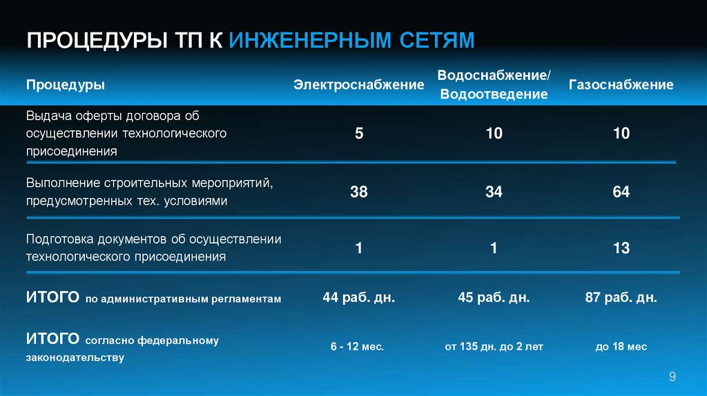 ПРОЦЕДУРЫ ТП К ИНЖЕНЕРНЫМ СЕТЯМЭлектроснабжение