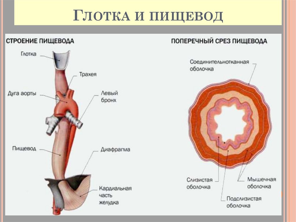 отделов: ротовая полость, глотка, пищевод,