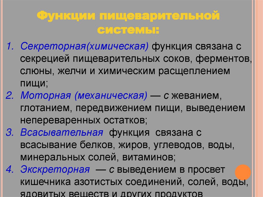 Функции пищеварительнойсистемы: