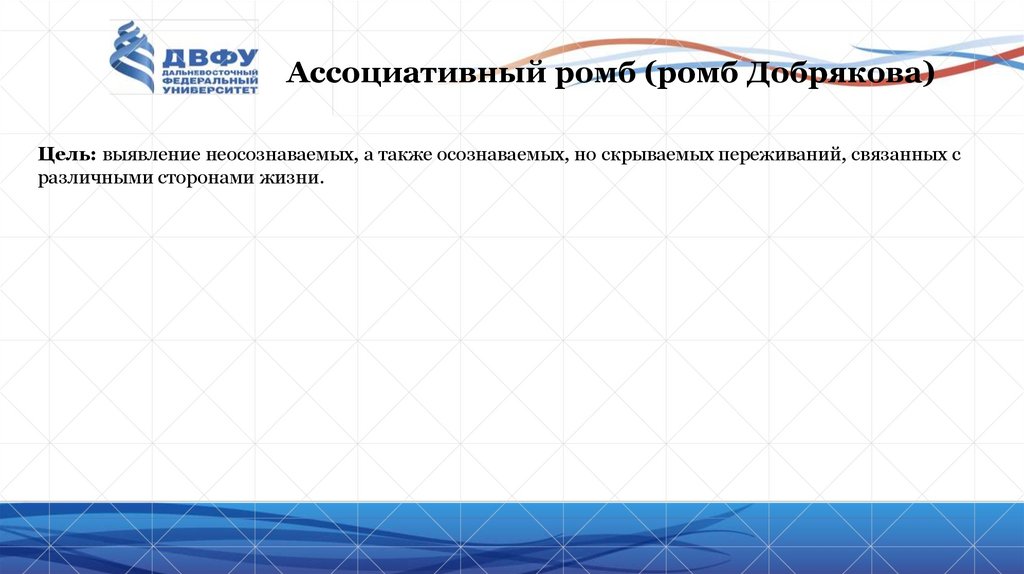 Ассоциативный ромб (ромб Добрякова)Цель: выявление неосознаваемых, а также осознаваемых, но скрываемых переживаний, связанных с